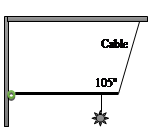 The light, which weighs 105 N, is suspended 1.80 m from the left sidewall.
