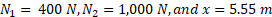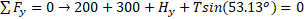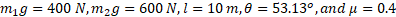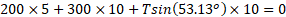 T can be solved by using torque balance. 2.1× From above equation, solve for T. T = —420 N(upward) |