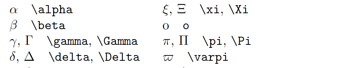 - e. Greek Letters: